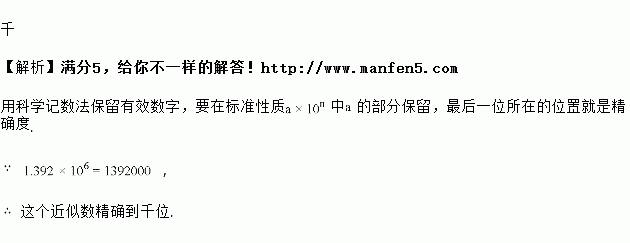 太阳的直径约为千米,这个近似数精确到________位.