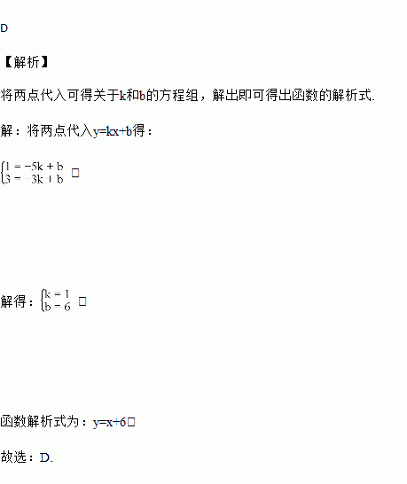 已知直线y=kx+b经过点(-5,1)和(-3,3),那么函数的解析式为 ( )