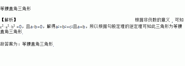 已知a、b、c是△ABC的三边长,且满足关系式+|a﹣b|=0,则△ABC的形状为_____.