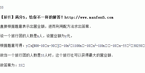 某旅行社组团去外地旅游,30人起组团,每人单价800元.旅行社对超过30人的团给予优惠,即旅行团的人数每增加一人,每人的单价就降低10元.当一个旅行团的人数是______人时,这个旅行社可以获得最大的营业额.