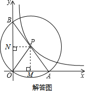 (x>0)图象上任意一点,以P为圆心,PO为半径的圆与坐标轴分别交于点A、B.