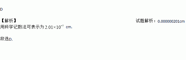 生物具有遗传多样性,遗传信息大多储存在DNA分子上,一个DNA分子直径约为0.000000201cm,这个数量用科学记数法可表示为( )
