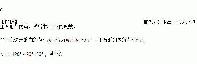 如图,边长相等的正方形、正六边形的一边重合,则∠1的度数为( )