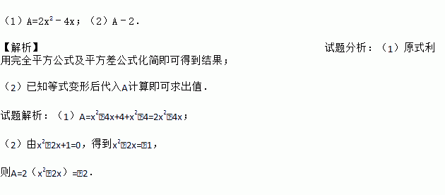 已知A=(x﹣2)2+(x+2)(x﹣2)