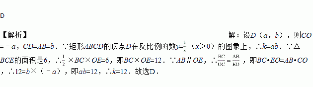 (x>0)的图象上,顶点B、C在x轴上,对角线DB的延长线交y轴于点E,连接CE,若△BCE的面积是6,则k的值为( )
