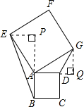 (2)过点E作△ABE中AB边上的高,交BA延长线于点P,过点G作△ADG中AD边上的高,交AD延长线于点Q.利用正方形和直角三角形的性质可证明△AEP≌△AGQ,即EP=QG,AB=AD,所以△ABE与△ADG也是等底等高,它们的面积关系是相等.