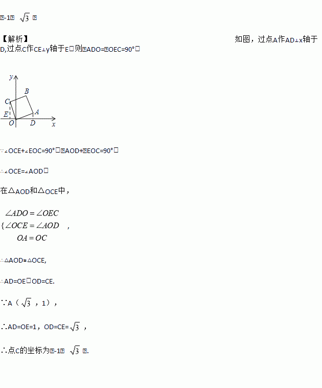 已知,如图在坐标平面内,OA⊥OC,OA=OC,A(,1),求C点坐标
