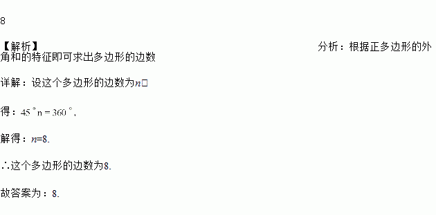 已知一个正多边形的每个外角都等于45°,则这个正多边形的边数是_____.