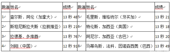下表是某年雅典奥运会男子110米栏决赛的结果.其中最后一名选手的成绩比第一名选手的成绩少