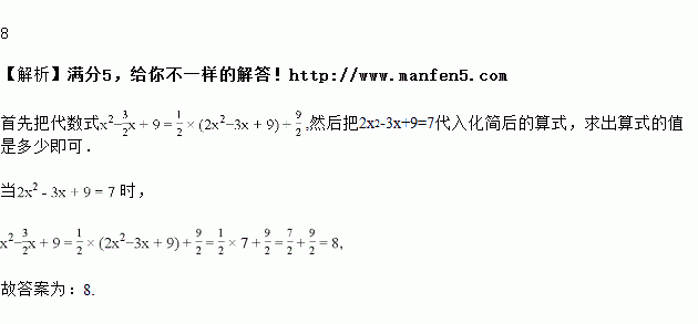 已知代数式 2x2﹣3x+9 的值为 7,则