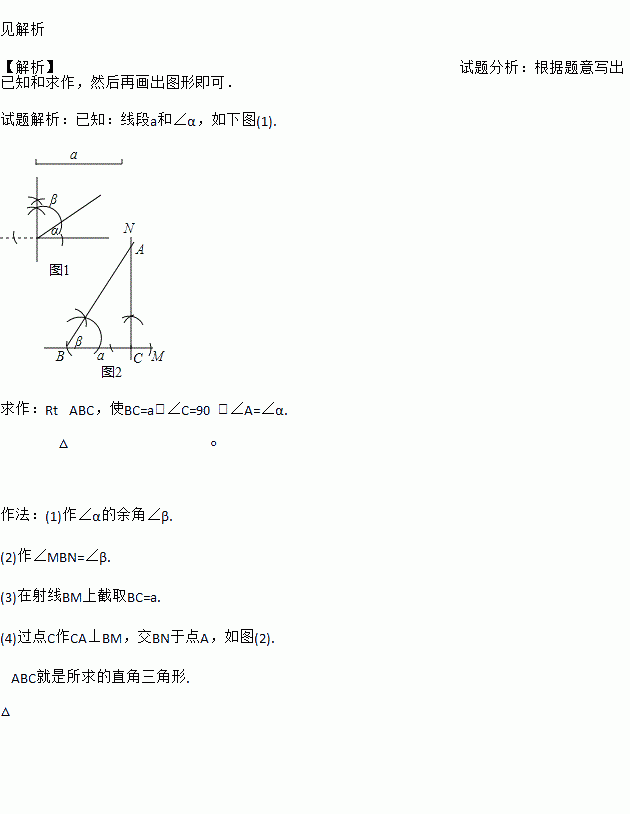 已知一直角边和这条直角边的对角,求作直角三角形(用尺规作图,不写作法,但要保留作图痕迹).
