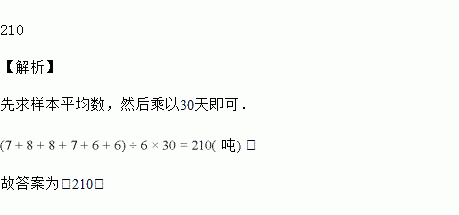 李师傅随机抽查了本单位今年四月份里天的日用水量(单位:吨)结果如下:,,,,,,根据这些数据,估计四月份本单位用水总量为________吨.