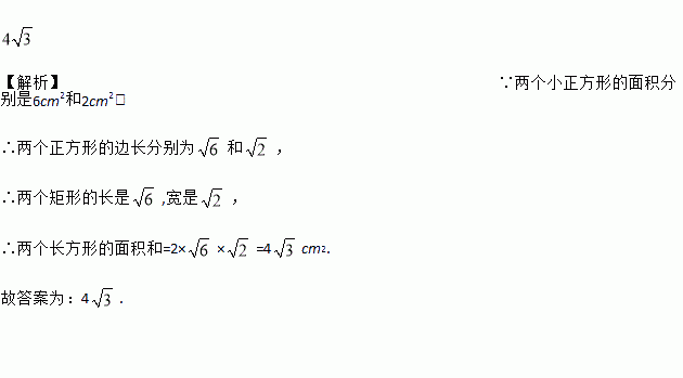 如图,正方形ABCD被分成两个小正方形和两个长方形,如果两个小正方形的面积分别是6cm2和2cm2,那么两个长方形的面积和为___cm2.