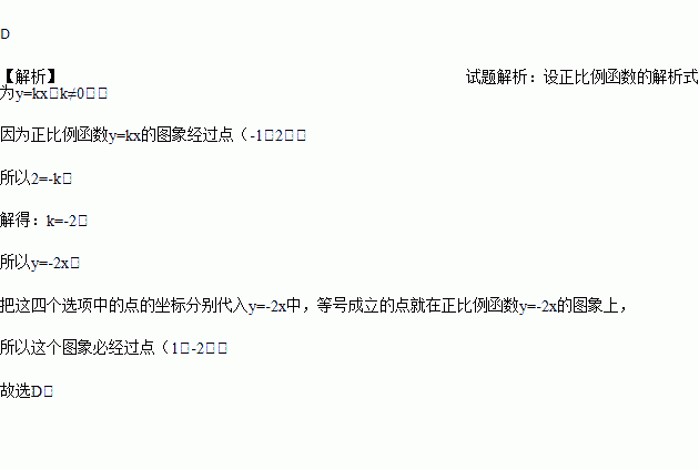 若正比例函数的图象经过点(﹣1,2),则这个图象必经过点( )