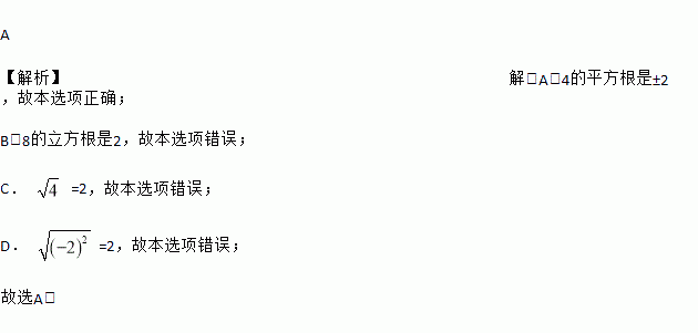 A. 4的平方根是±2 B. 8的立方根是±2 C. D.