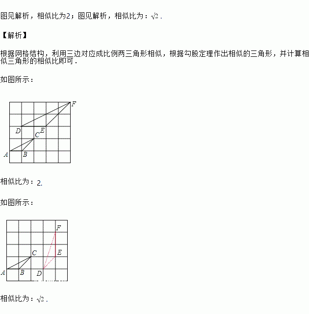 网格中每个小正方形的边长都是.在下列各个图中画一个格点,使,并且注明相似比.