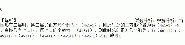 如图(1)是一个水平摆放的小正方体木块,图(2),(3)是由这样的小正方体木块叠放而成,按照这样的规律继续叠放下去,至第七个叠放的图形中,小正方体木块总数应是( )个.