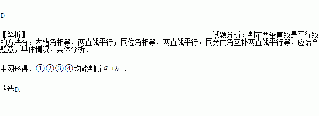 ;②∠3=∠6;③∠4+∠7=180°;④∠5+∠8=180°.其中能判断a ∥b的条件是( )