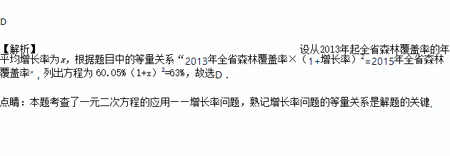 为了让山更绿、水更清,确保到2015年实现全省森林覆盖率达到63%的目标,已知2013年全省森林覆盖率为60.05%,设从2013年起全省森林覆盖率的年平均增长率为x,则可列方程( )