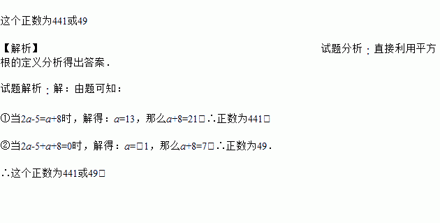 若2a-5和a+8是一个正数的平方根,那么这个正数是多少?.