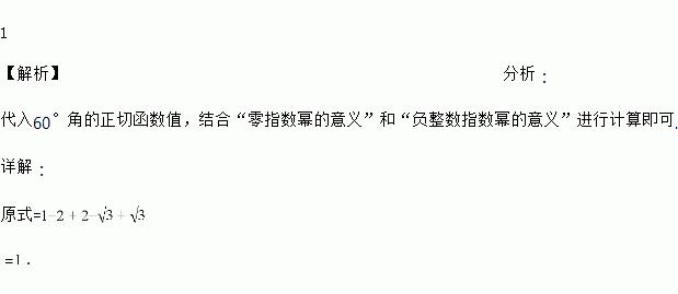 ﹣2|+tan60°