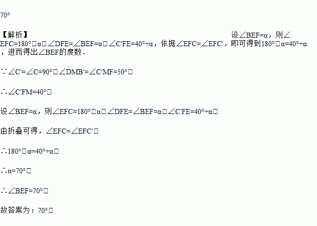 如图,将矩形ABCD折叠,折痕为EF,BC的对应边B'C′与CD交于点M,若∠B′MD=50°,则∠BEF的度数为_____.