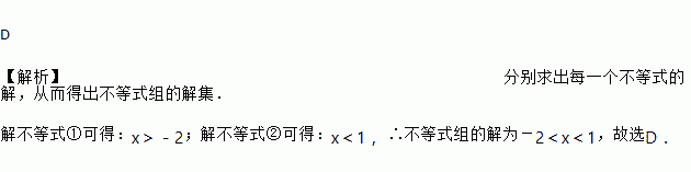 A. x>-2 B. x<1 C. -1<x<2 D. -2<x<1