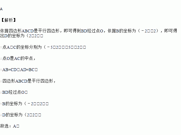 如图,在平面直角坐标系中,把△ABC绕原点O旋转180°得到△CDA,点A,B,C的坐标分别为(﹣5,2),(﹣2,﹣2),(5,﹣2),则点D的坐标为( )