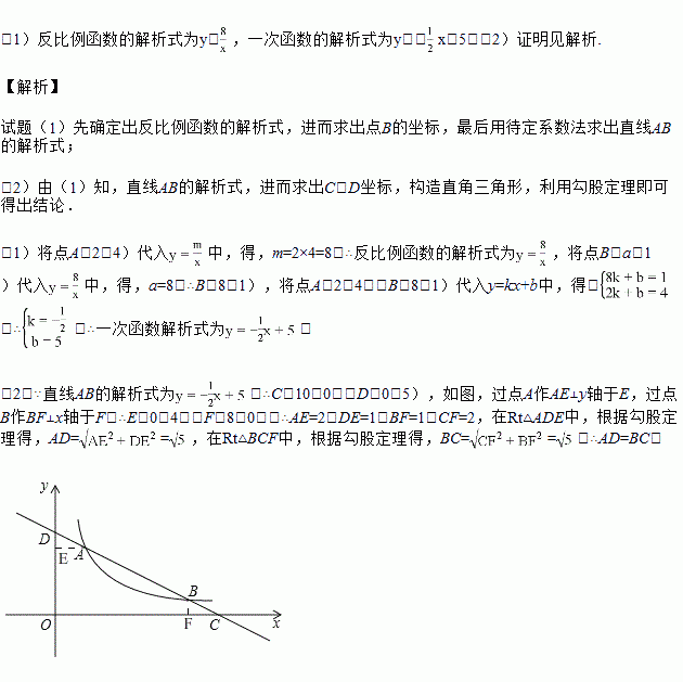 (x>0)交于A(2,4),B(a,1),与x轴,y轴分别交于点C,D.