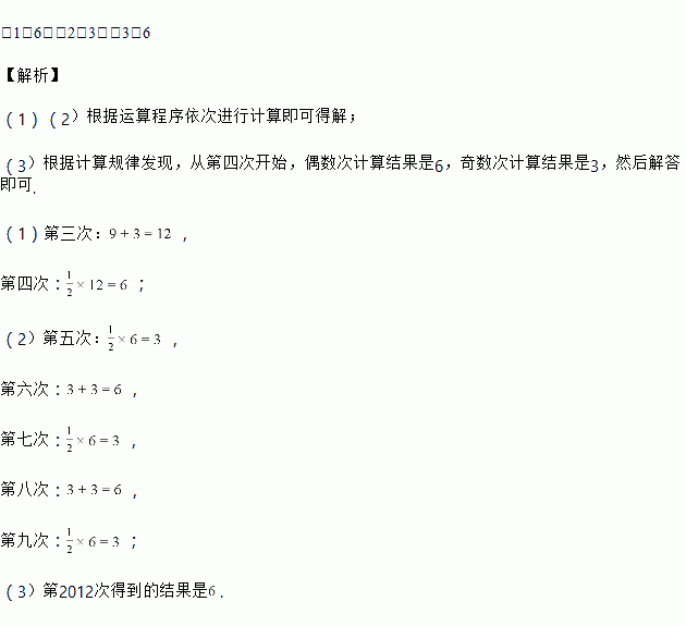 (1)第四次得到的结果;(2)第九次得到的结果;(3)第2012次得到的结果.