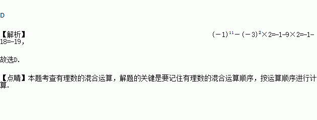 (-1)11-(-3)2×2的值是( )