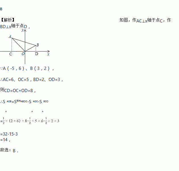 如图,点A,B的坐标分别为(-5,6),(3,2),则三角形ABO的面积为( )