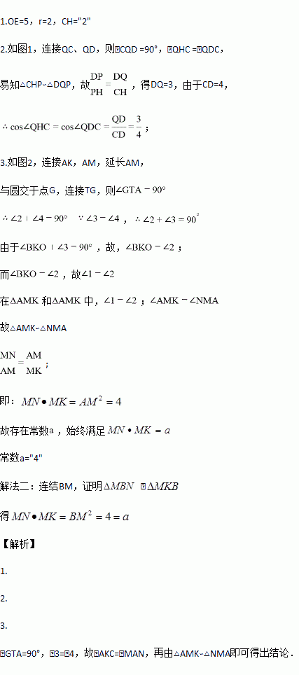 (2)如图2,弦HQ交x轴于点P,且DP : PH=3 : 2,求cos∠QHC的值;