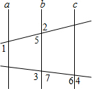 20.分析 由∠1=∠2,∠2=∠5可得出∠1=∠5,由此得出a∥b;由∠3+∠4=180°,∠3+∠4+∠6+∠7=360°可得出∠6+∠7=180°即∠6、∠7互补,由此得出b∥c;结合上面结论即可得出a∥c.