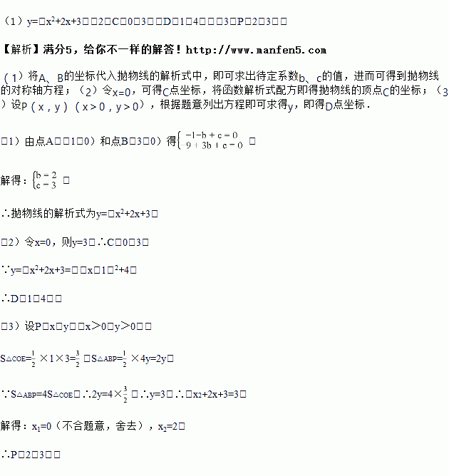 (3)若点P在第一象限内的抛物线上,且S△ABP=4S△COE,求P点坐标.
