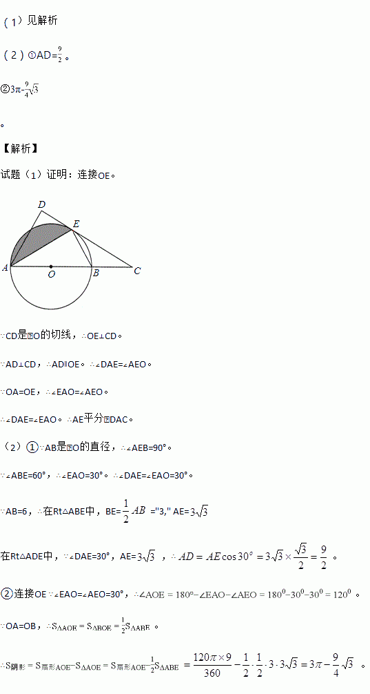 如图,AB是⊙O的直径,C是AB延长线上一点,CD与⊙O相切于点E,AD⊥CD于点D.