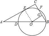 如图,Rt△ABC中,∠C=90°,D是AB上一点,以BD为直径的⊙O切AC于点E,交BC于点F,OG⊥BC于G点.![]()