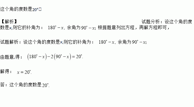 一个角的补角比它的余角的2倍大20゜,求这个角的度数.