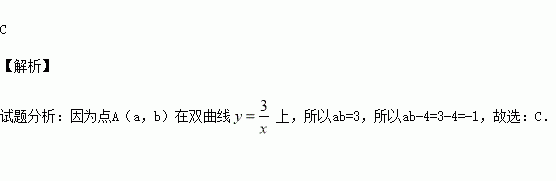 若点A(a,b)在双曲线上,则代数式ab-4的值为