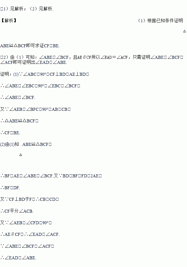 (2)若BD=2AE,求证:∠EAD=∠ABE.