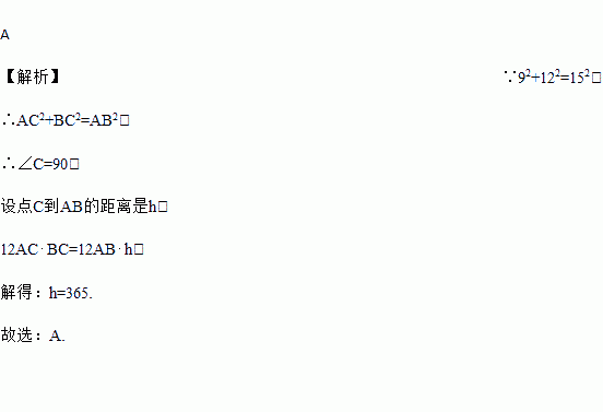 在△ABC中,AC=9,BC=12,AB=15,则点C到AB的距离是( )