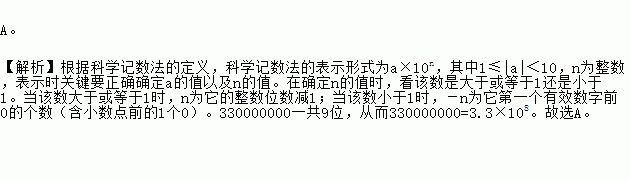 A.3.3×108 B.3.3×109 C.3.3×107 D.0.33×1010