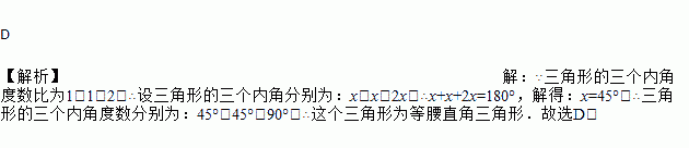 Èç¹ûÈý½ÇÐεÄÈý¸öÄڽǶÈÊý±ÈΪ1£º1£º2£¬ÔòÕâ¸öÈý½ÇÐÎΪ£¨¡¡¡¡£©