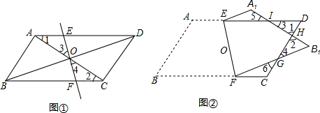 (2)如图②,将?ABCD(纸片)沿过对角线交点O的直线EF折叠,点A落在点A1处,点B落在点B1处,设FB1交CD于点G,A1B1分别交CD,DE于点H,I.