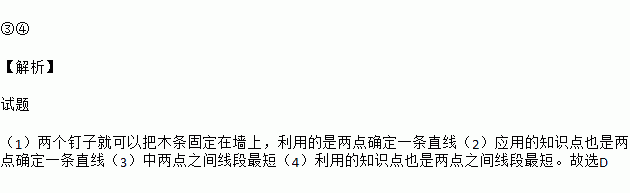 ②植树时,只要定出两棵树的位置,就能确定同一行树所在的直线;
