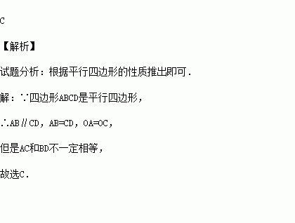 A.AB∥CD B.AB=CD C.AC=BD D.OA=OC
