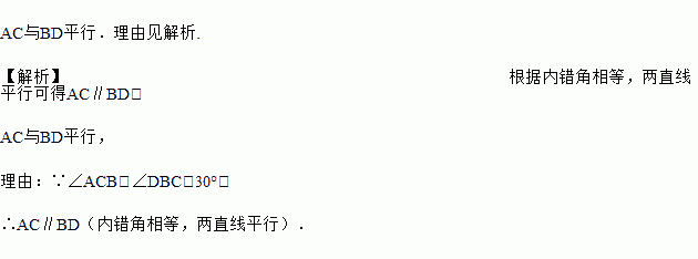 如图是用两块完全一样的三角板(含30°角)拼成的图形.请问AC与BD平行吗?为什么?