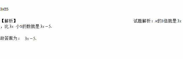 “比数x的3倍小5的数”用代数式表示为_____.