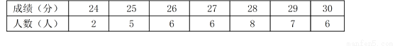 C. 该班学生这次考试成绩的中位数是28分 D. 该班学生这次考试成绩的平均数是28分