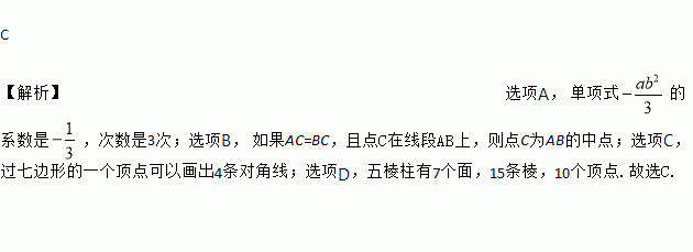 D. 五棱柱有8个面,15条棱,10个顶点